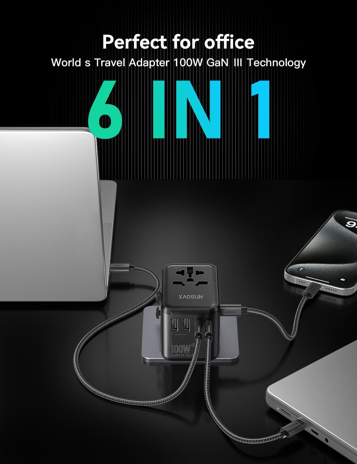 Introducing the XAOSUN Universal Travel Adapter – the ultimate companion for jet-setters and globetrotters alike! Say goodbye to the hassle of carrying multiple adapters for different countries, as this innovative 100W GaN Travel Plug Adapter has got you covered wherever your adventures take you. Equipped with 3 Type-C and 2 USB-A ports, this International Charger…