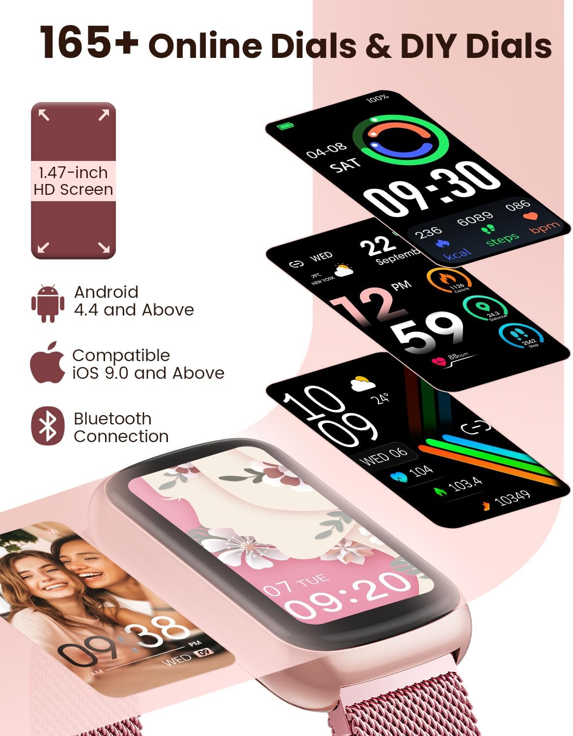 Fitness Tracker- Smart Watches for Women Men with 24/7 Heart Rate Monitor Blood Oxygen Sleep Tracker, Waterproof Fitness Watch, Activity Smartwatch for Android iPhone, Calorie Distance Pedometer, Gift